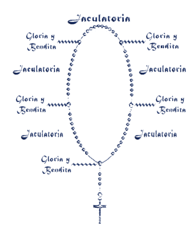Esta es una devoción que consiste en repetir cincuenta veces la jaculatoria: Oh María sin pecado concebida, ruega por nosotros que recurrimos a Ti, rezando al final de cada decena (Gloria al Padre, Gloria al Hijo y Gloria al Espíritu Santo, como era en un principio, ahora y siempre, por los siglos de los siglos; Amén), seguida de (Bendita sea tu pureza y eternamente lo sea, pues todo un Dios se recrea en tan graciosa belleza. A Ti, Celestial Princesa, Virgen Sagrada María, yo te ofrezco en este día alma, vida y corazón, mírame con compasión, no me dejes Madre mía. Amén). Al finalizar las cinco decenas y las cinco Gloria y Bendita, se rezan las letanías lauretanas.